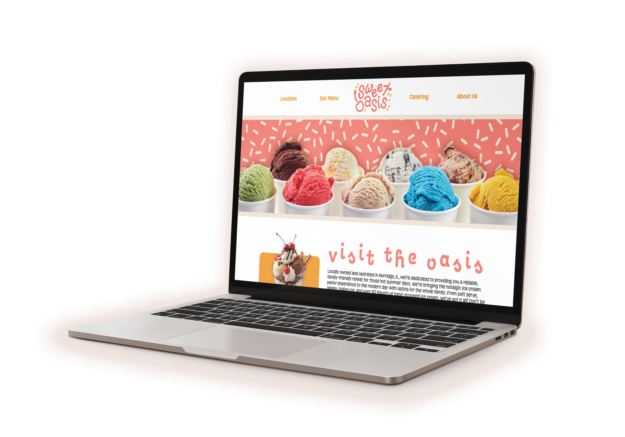 Total rebrand project for Sweet Oasis, an independent ice cream shop in Illinois.